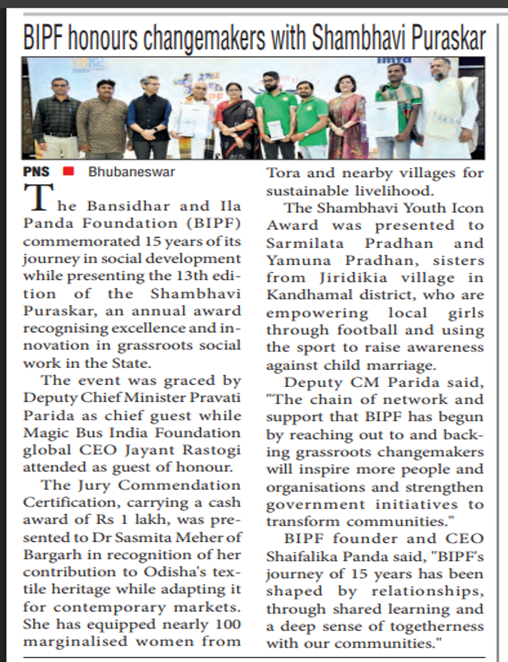 Article by Ms Shaifalika Panda, Trustee & Founder CEO, BIPF