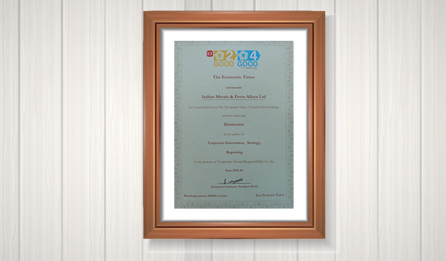 IMFA was commended in the pillars of Corporate Governance, Strategy and Reporting in the Economic Times 2 Good 4 Good CSR Rating Scheme for the year 2015-16.The Economic Times, along with KPMG in India as a knowledge partner has created “The ET 2-GOOD 4-GOOD”, which is a certification scheme that certifies organizations based on their CSR performance, CSR process and Systems. Mr T C Hota, Executive Vice President, BIPF received the certificate of commendation from Mr Jaco Cillier, Country Director UNDP, and Mr. Akhil Bansal, Deputy CEO, India, KPMG in a formal function held at New Delhi on 19/July/2017.