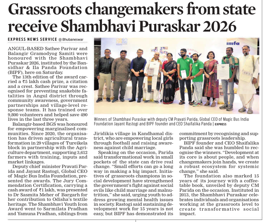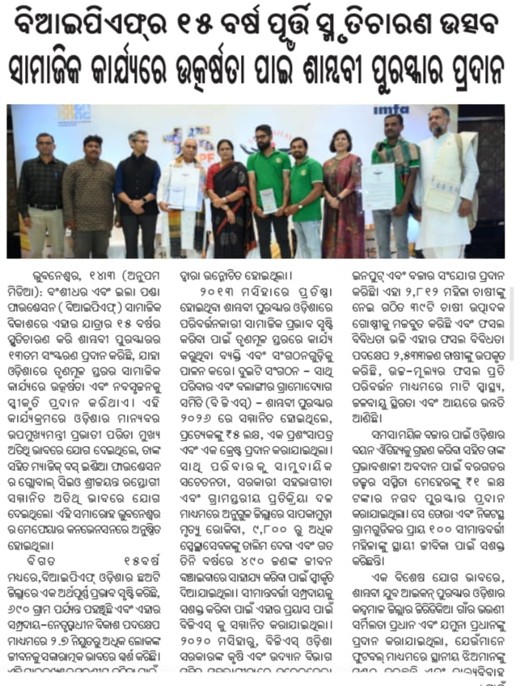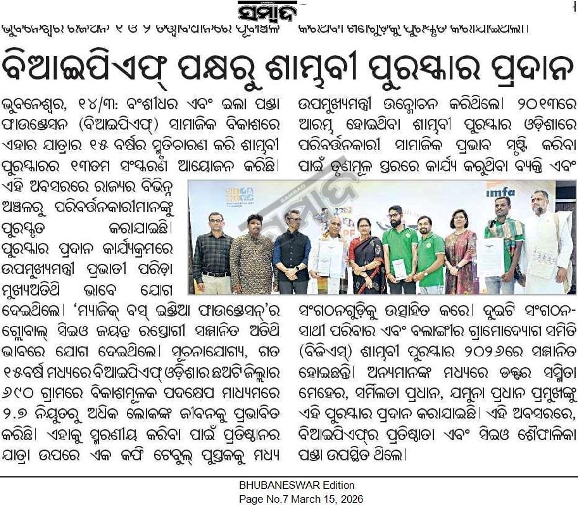 Shambhavi Puraskar 2024 , held on 03 May 2024 at Bhubaneswar Conferred upon Shri Ranjit Majhi and JCC recipient Smt Sasmita Managaraj.