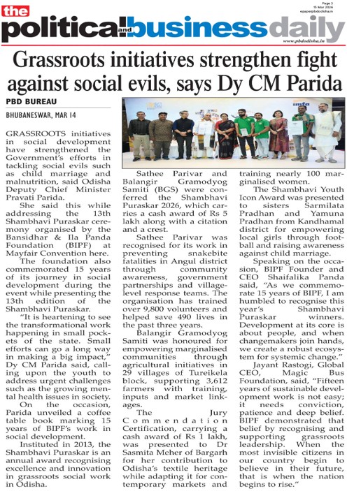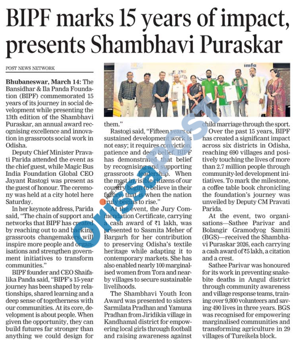Article by Ms Shaifalika Panda, Trustee & Founder CEO, BIPF